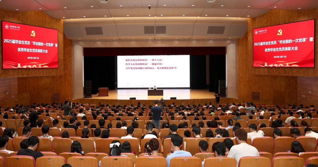 为深入学习贯彻习近平新时代中国特色社会主义思想,扎实开展深入贯彻中央八项规定精神学习教育,进一步强化毕业生党员身份意识和责任担当,6月11日,我校举办2025届毕业生党员“毕业前的一次党课”暨优秀毕业生党员表彰大会。校党委书记戴建君,校党委副书记朱红,校党委副书记、纪委书记陈文恩出席会议,党委相关部门负责人、学院党委负责人、组织员、毕业班辅导员、毕业生党员代表等1000余人参加会议。