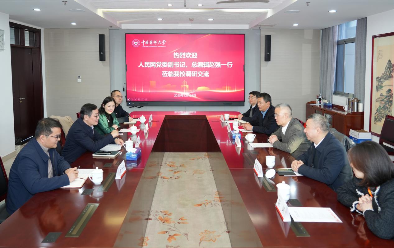 赵强对学校的热情接待表示感谢,并高度肯定了中国药科大学在生物医药领域的学科实力。他表示,作为党中央机关报《人民日报》社主管的国家重点新闻网站,人民网正以“内容科技”战略为引领,加速拓展“新闻+政务+商务+服务”的业务布局,网站依托“传播内容认知全国重点实验室”探索AI创新发展路径。他期待未来能与学校在可信数据空间建设、药学垂直领域语料库开发等方面深化合作,实现优势互补、资源共享,为夯实生物医药领域的权威性,推进主流价值语料库建设贡献智慧和力量。