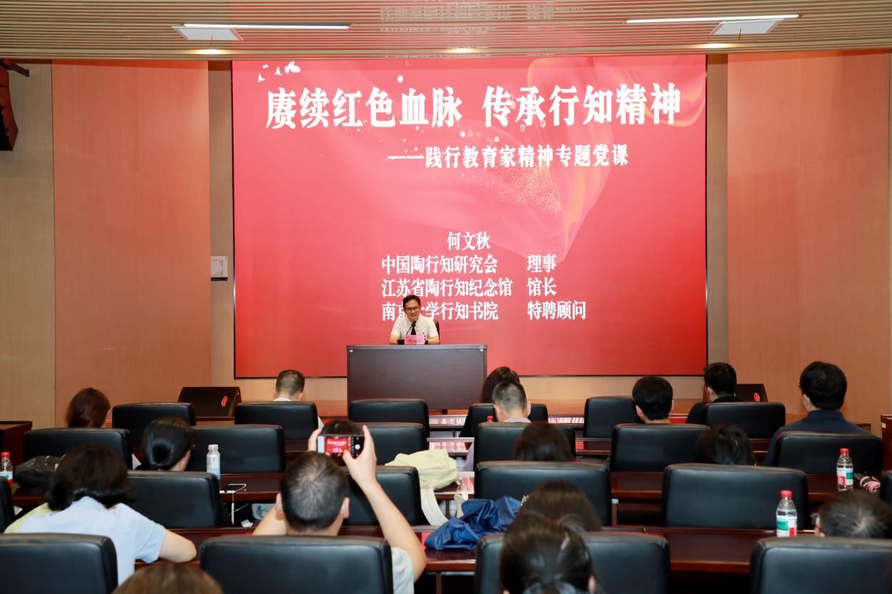 活动伊始,江苏省陶行知纪念馆馆长、南京大学行知书院特聘顾问何文秋为大家带来了一场“践行教育家精神”专题党课,深入阐释陶行知先生教育理念与崇高精神,鼓励大家学习“四有”好老师,传承行知精神。