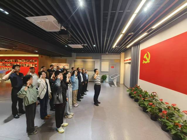 在庄严肃穆的纪念馆内,全体党员怀着崇敬之情瞻仰了革命群雕,向革命先烈敬献花篮并鞠躬致敬。通过聆听讲解员生动翔实的解说,大家深入了解了太华山新四军和苏南抗日根据地的光辉历史。在沉浸式参观过程中,一件件珍贵文物、一幅幅历史照片、一段段影像资料,让全体党员深切感受到革命先辈坚定的理想信念和崇高的革命精神。参观结束后,全体党员面向党旗庄严宣誓,重温入党誓词,进一步坚定了为党和人民事业奋斗终身的初心使命。