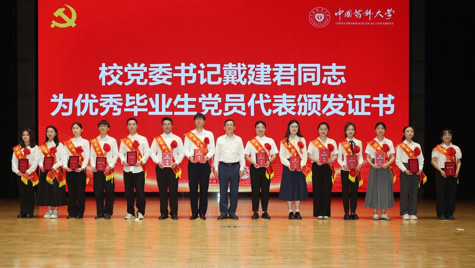 活动在庄严的国歌声中拉开帷幕,朱红宣读优秀毕业生党员表彰决定,戴建君为优秀毕业生党员代表颁发荣誉证书。2025届制药工程专业本科毕业生左凯旋同学作为优秀毕业生党员代表发表获奖感言。陈文恩宣读学校党委《致中国药科大学2025届毕业生党员的一封信》。