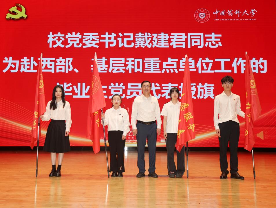 会上,戴建君为即将赴西部、基层和重点单位工作的毕业生党员代表授旗,勉励他们淬炼品格、增长才干、挺膺担当,让青春旗帜飘扬在祖国最需要的地方。