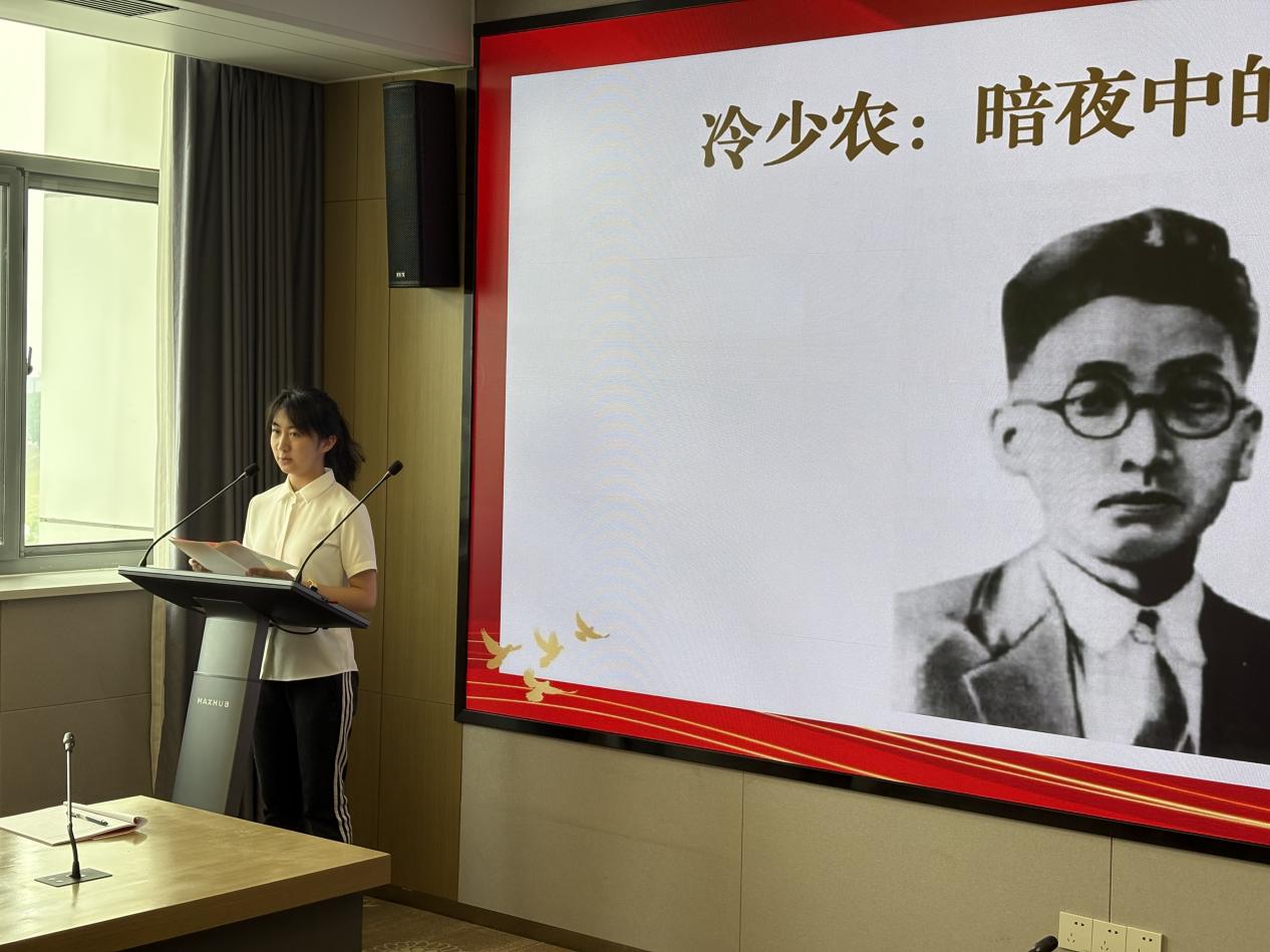 其间,冷少农烈士玄外孙女、我校药学院学生赵怡灵作为雨花英烈精神传承人,以《学雨花英烈精神,筑牢信仰之基》为题,生动讲述了中共隐蔽战线烈士冷少农同志的先进事迹和感人故事。