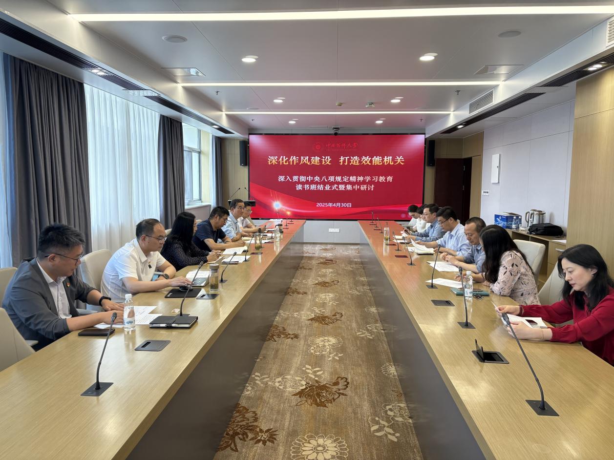 4月30日下午,机关党委在江宁校区行政楼803会议室召开深入贯彻中央八项规定精神学习教育读书班结业式暨集中研讨会。校学习教育督导组成员、正处级纪检员施建平列席督导,校学习教育督导组成员、党委巡察办公室主任许书宏列会巡学指导。机关党委委员、纪委委员参加会议,会议由机关党委书记杜文清主持。