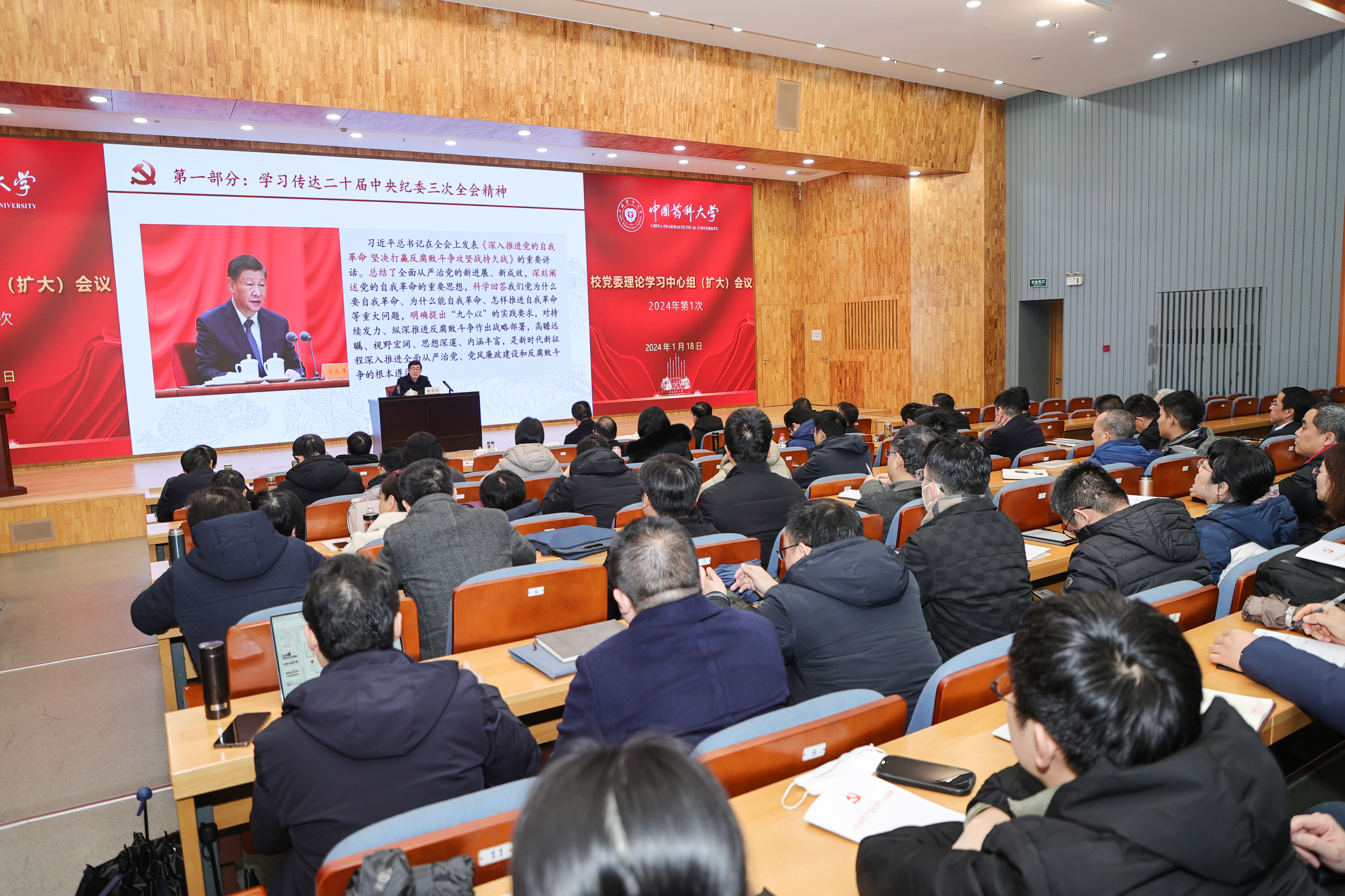 为深入贯彻落实党的二十大精神和二十届中央纪委三次全会重要部署,1月18日上午,我校在江宁校区会议中心二楼报告厅召开校党委理论学习中心组2024年第1次学习(扩大)会议。校领导、校党委理论学习中心组成员、全校副处级以上干部、各二级党组织纪检委员等参加会议。会议由校党委书记金能明主持。